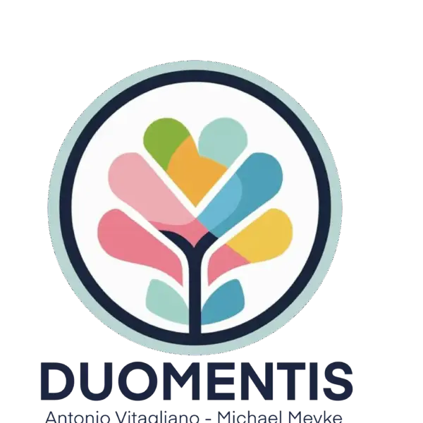 DUOMENTIS – due amici , e una sola VISIONE: cuore e mente per le persone! Siamo due professionisti e amici che hanno deciso di unire le proprie esperienze di psicologia, arte e creatività, per accompagnare bambini, adolescenti, famiglie, scuole e gruppi in percorsi di crescita autentica a ritrovare fiducia e nuove prospettive. Tra Roma e Napoli, con uno sguardo internazionale, offriamo percorsi di crescita e di scoperta autentica in tutto Italia.